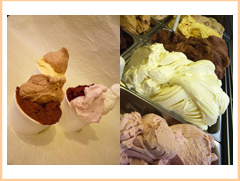 A: ジェラートとは一言で言ってしまえば、イタリア語で“アイス”のことです。 でも、本来のジェラート、つまりイタリアのジェラテリアで作られ、売られているジェラートは、 日本で慣れ親しまれているアイスクリームとは明らかに一線を画しています。 いったい何が違うのでしょうか。 一番の違いは、大きな工場で大量生産されたものではなく、 それぞれのジェラテリア、つまりジェラート屋さんが、そのお店の厨房で作る“自家製の”アイスであるということ。 だから同じフレーバーでも店によってレシピも違うので当然味が違います。 二つ目は空気の含有量。 工場で作られるアイスクリームは30%〜50%の空気を含んでいるのに対し、 手作りジェラートは20%〜30%。 これがジェラートの食感がアイスクリームとは違い、より滑らかな所以です。 三つ目はその保存温度。 アイスクリームはマイナス18度以下で保存するのが一般的です。 一方ジェラートはマイナス10〜15度。ほとんどの店がマイナス13度以上で保存しています。 そのためアイスクリームに比べより滑らかで、口溶けもよいのです。 当店ではショーケース内をマイナス10度前後に保っています。 最後は脂肪分の違い。 これはレシピやフレーバーによって違うので一概には言えませんが、 大体のジェラートは含まれる脂肪分が9パーセント以下。 各店の最も濃厚なフレーバーを選んでも日本のアイスクリーム分類に従うと “アイスミルク”のカテゴリーに入るものがほとんどです。 ・・・以上の理由(特に二番目と三番目)からジェラートは最初からカップ詰めにして売るのには適していません。 やはりそのお店に行って、その場で軽く練って盛り付けてもらったものをすぐ食べるのが一番おいしい! |
